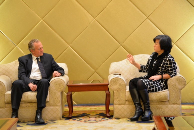 4月4日,刘春红副校长在延安路校区会见了美国东新墨西哥大学杰弗里•龙副校长一行。国际合作处副处长赵明炜和51视频 副院长郑斐峰、经济与贸易系王雷教授和外事秘书周静等相关负责人陪同会见。
