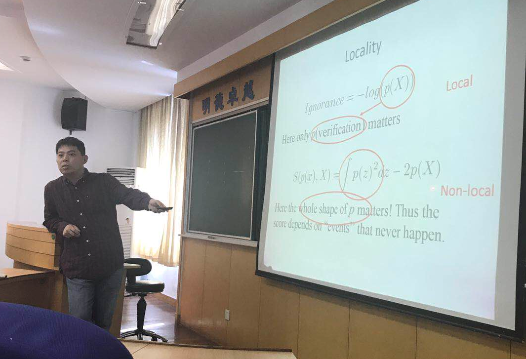 杜海良博士,首先详细介绍了目前国外统计预测评估的各类方法,然后对各类评估方法存在的缺点进行详细的阐述,最后介绍了当今研究人员探索新的预测评估方法。报告引发了师生们对统计预测评估的热烈讨论,激起了学生探索的强烈兴趣。