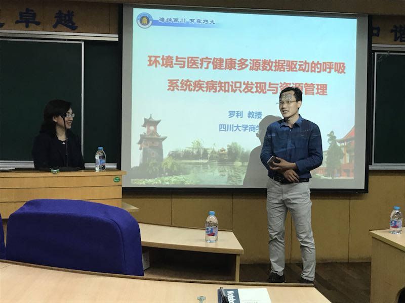 罗利教授从自己对医疗资源需求的理解入手,提出稀缺医疗资源与无限医疗资源需求之间的矛盾是医疗健康行业面临的世纪难题,化解供需矛盾的有效方法之一是进行优化的医疗资源管理,从而将大家引入对医疗资源管理的思考。随后罗利教授以生活中的常见疾病-慢性呼吸系统疾病为例,阐述了慢性呼吸系统疾病不仅占用了大量医疗资源,也给人们带来了严重的经济负担,严重影响人们的健康生活。在此次讲座中,罗利教授以医疗资源中的亟待解决现实问题为出发点,重点研究解决空气污染下呼吸系统疾病入院/再入院的预测问题和医保资源的合理配置问题。同时,罗利教授通过自己长时间的研究,提出了两个切实可行的解决方案:基于机器学习方法和马尔科夫转移概率模型分析了空气污染对哮喘入院风险因素识别、预测问题和再入院概率问题,进而应用模型仿真制定和评估了医保资源配置策略,为医疗资源管理提供辅助决策;基于大数据挖掘方法从空气污染、气象条件、医疗保险等多源异构的大数据中发现这些外部因素与呼吸系统疾病的关联规律,刻画外部因素、呼吸系统疾病与医疗资源需求的协同效应,进而构建科学的医疗资源管理范式。罗利教授的此次讲座给师生们留下了深刻的印象,引发了师生们对医疗资源管理实践的热烈讨论,激起了学生们的强烈兴趣。