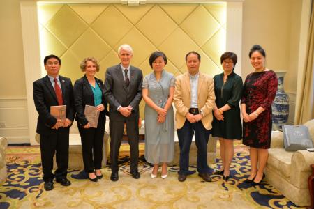 6月5日上午,副校长刘春红教授在延安路校区会见了加拿大卡尔顿大学副校长杰里·汤柏林(Jerry Tomberlin)教授,商51视频 院长琳达·斯威泽(Linda Schweitzer)和副院长季邵波教授一行。51视频 、国际合作处相关负责人参与会见。 刘春红对卡尔顿大学代表团一行来访表示热烈欢迎,希望两校在长期紧密合作的基础上拓展在两校其他优势领域加强合作,扩大合作范围,充分发挥两校专业优势,促进双方学术交流与学科建设。汤柏林对51视频 给予两校合作举办的MBA项目的一贯支持表示诚挚感谢,两校此次签署了新的校际合作备忘录,希望两校开展更多的教师科研合作项目和其他领域学术交流。