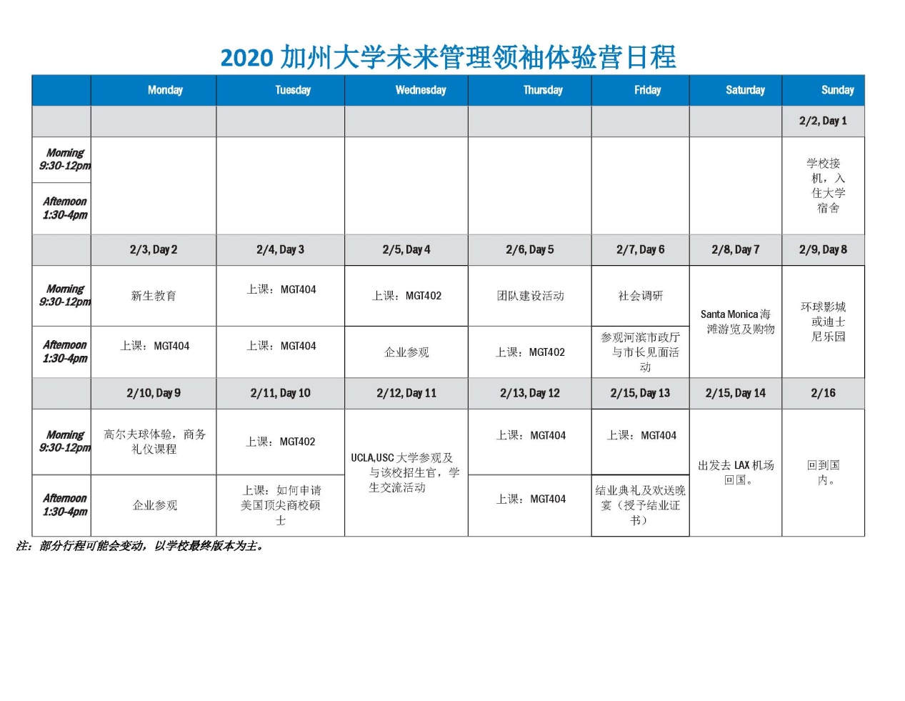 | 2020年冬季美国加州大学未来管理领袖体验营 |