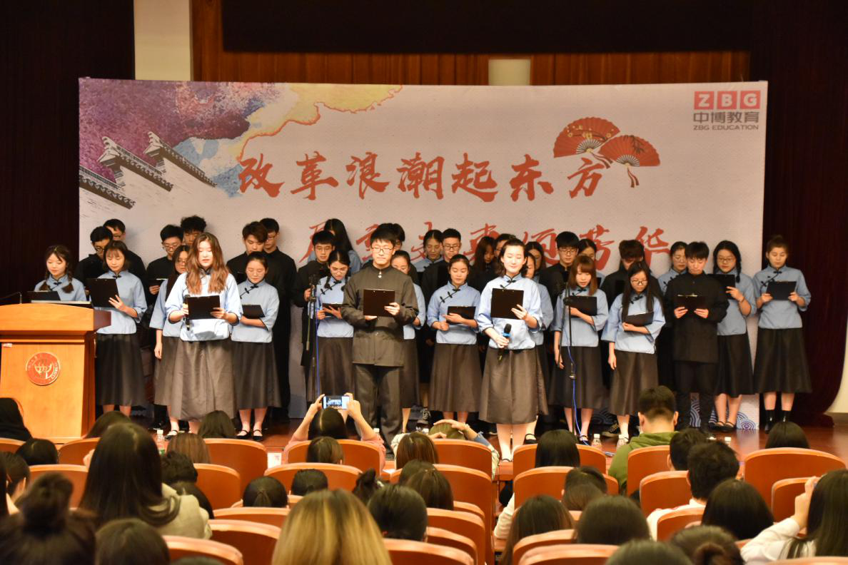 “在这片神奇的土地上,又一次萌发了腾飞的希望,历史的巨笔将描绘出新世纪更加灿烂的辉煌!” 国贸1701带来的《华夏崛起的希望》道出了他们对改革开放的称赞。少年智则国治,少年富则国富,少年强则国强。每一位中华少年,都是神州大地上冉冉升起的新星,也是构成祖国未来的希望。1978年,中国共产党用改革开放的伟大宣示把中国带入一个崭新的时代。