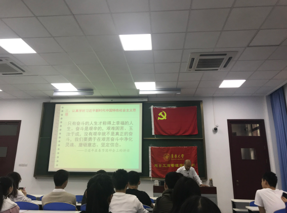 此次党课贺善侃教授用三个主题讲述了他的研究和理解,分别是习近平新时代中国特色社会主义思想的历史地位和重大意义、习近平新时代中国特色社会主义思想的核心要义和创新点以及认真学好习近平新时代中国特色社会主义思想。