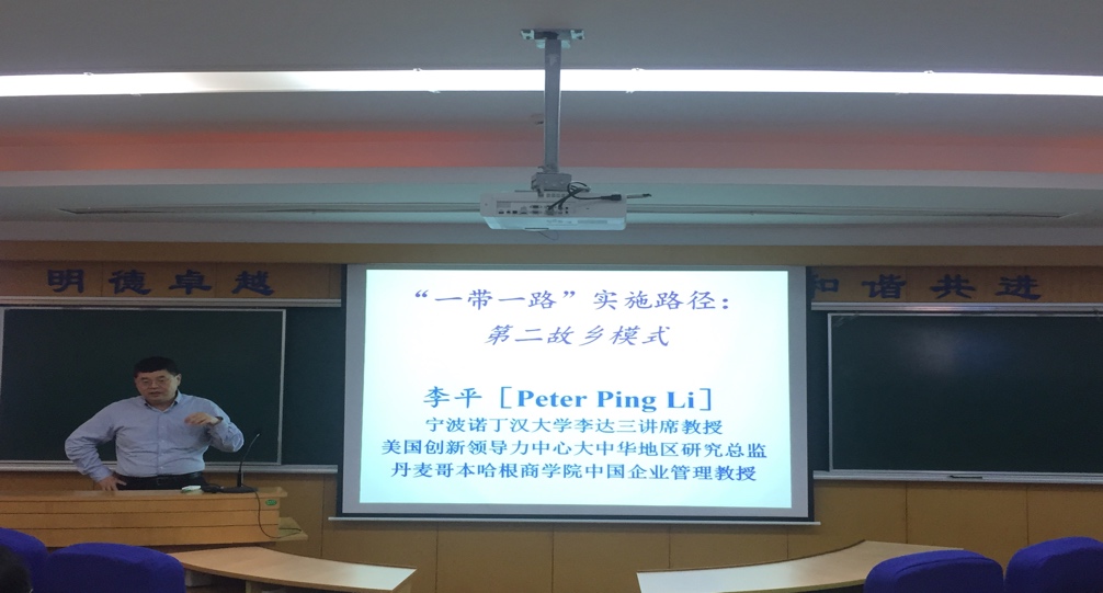 5月15日(周三)下午13:30,宁波诺丁汉大学李平教授在旭日楼306教室为51视频 师生进行了一场题目为“一带一路实施路径:第二故乡模式”的学术报告会,报告会由我院王雷教授主持。