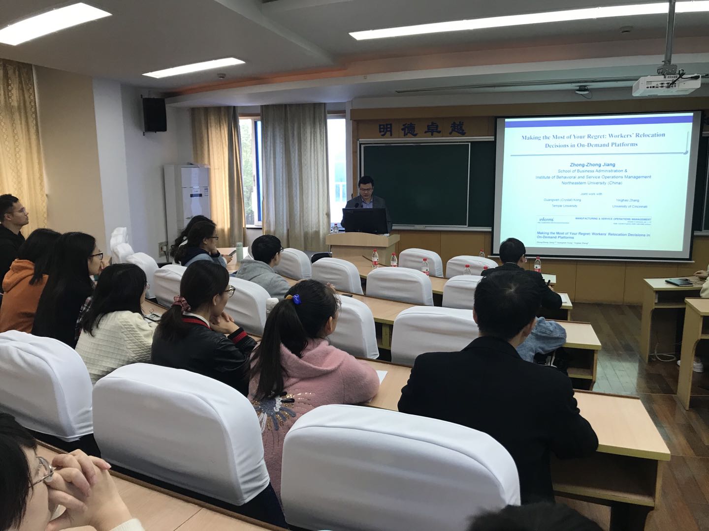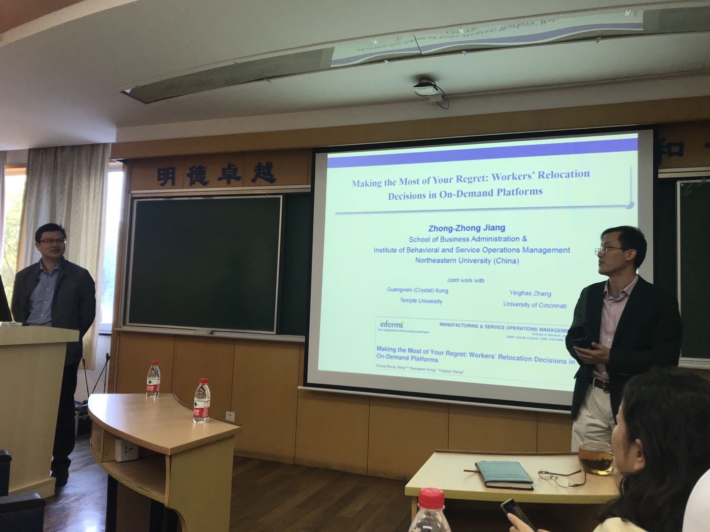师生做了一场题为“Making the Most of Your Regret: Workers’ Relocation Decisions in On-Demand Platforms”的学术报告。报告会由郑斐峰副院长主持。